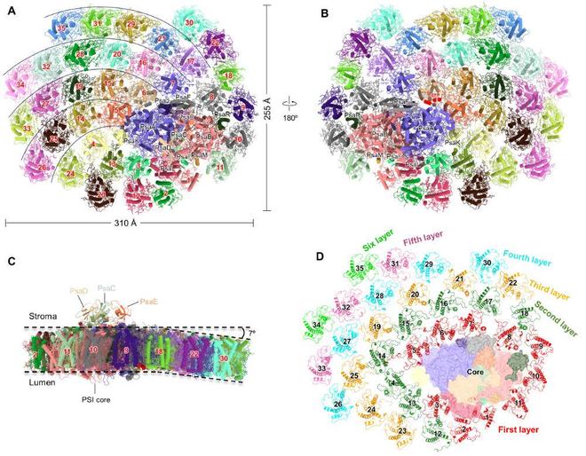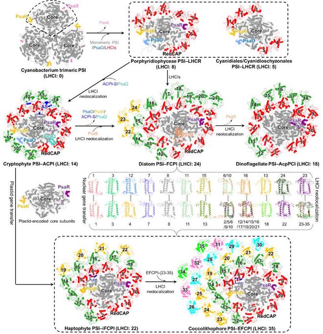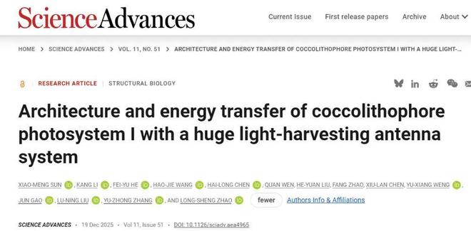 该成果揭示了颗石藻超大PSI–LHCI复合体的精密构造与高效工作机理,阐明了其适应深海弱光环境的独特策略,推进了光合作用基础研究,为未来设计新型高效人工光合系统或改良作物光能利用提供了珍贵的结构蓝图和进化启示。