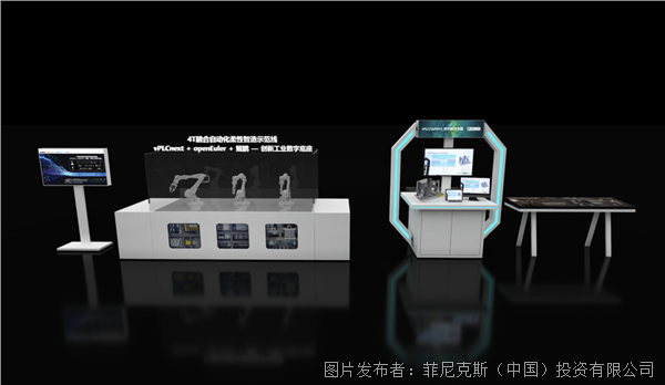 菲尼克斯电气联合华为、大湾区国创中心、拓斯达等共创“4T融合自动化柔性智造示范线”,以Virutal PLCnext Control虚拟控制技术为核心,融合鲲鹏、QSemOS、先进工业网络和X-Motion等方案与关键技术,结合菲尼克斯电气IO模块、HMI、工业连接器等全产品线,打造的原生柔性产线应用,实现工厂无线化、PLC集中化与产线柔性化。