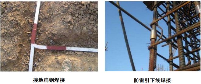 说明:当设计无要求时,接地装置顶面埋设深度不应小于0.6m 。圆钢、角钢及 钢管接地极应垂直埋入地下,间距不应小于5m。接地装置的焊接应采用搭接焊,搭接长度应符合下列规定:① 扁钢与扁钢搭接为扁钢宽度的2倍,不少于三面施焊;②圆钢与圆钢搭接为圆钢直径的6倍,双面施焊;③圆钢与扁钢搭接为圆钢 直径的6倍,双面施焊;④ 扁钢与钢管,扁钢与角钢焊接,紧贴角钢外侧两面,或紧贴3/4钢管表面,上下两侧施焊;⑤除埋设在混凝土中的焊接接头外,都应有防腐措施。