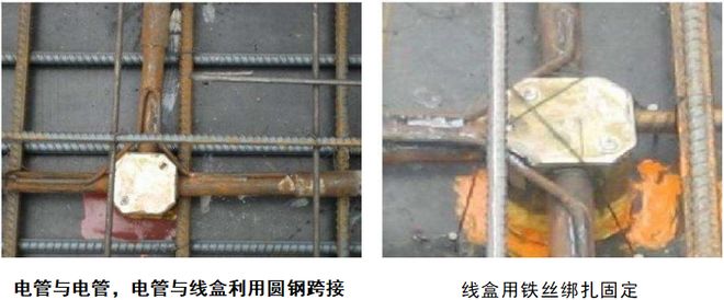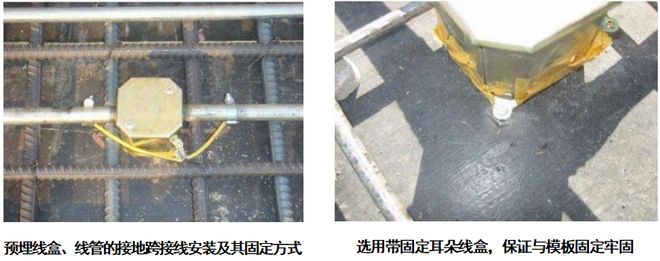 9.箱、盒预埋定位准确,固定牢固;周边应增加钢筋,以免受压变形及影响结构。