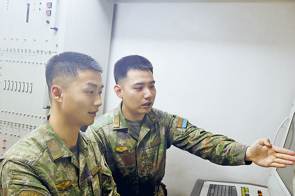 “人在阵地在!”那是一个狂风肆虐的深夜,台风裹挟着暴雨向雷达站袭来。大风撕扯雷达天线,金属支架发出刺耳的吱呀声。我们顶着风雨冲出去,狂风几乎要将人掀翻,但没有一个人退缩,大家合力对天线进行倒伏。待台风过后,顾不上休息,大家又立刻投入设备调试中。当雷达重新开始监视空情,屏幕上的光点重新有序闪烁,我望着战友们疲惫却坚毅的脸庞,感觉像是打赢了一场战斗——守护住了祖国的“眼睛”,就是我们最大的胜利。