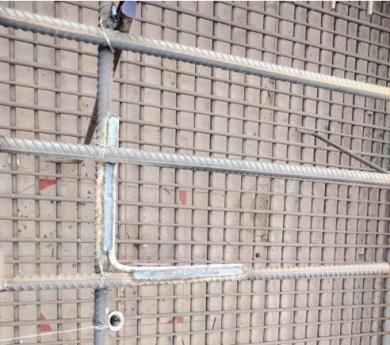 (2)接闪带的搭接采用“乙”字弯并上平、上下搭接连接,双面施焊,搭接长度要符合规范要求:(双面焊不小于 6D,D 为圆钢直径)。