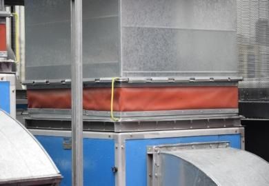 (2)柔性短管不应为异径连接管,矩形柔性短管与风管连接不得采用抱箍固定的形式。